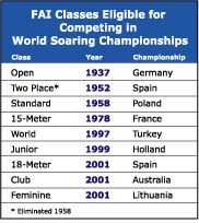 eight classes active in competitive soaring. These are